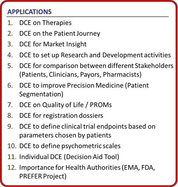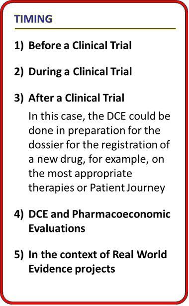 The Discrete Choice Experiment also applies to payors who must express their opinion on the value of innovation in new therapies and the cost to be incurred for the reimbursement of a new treatment.